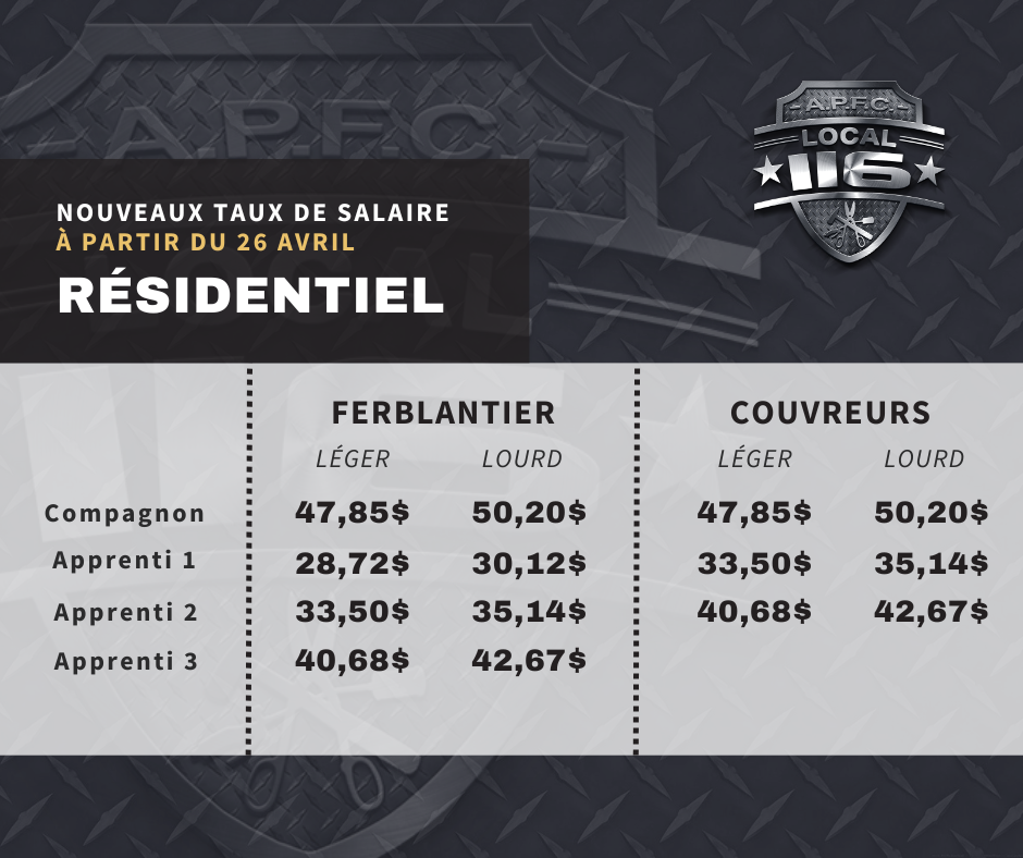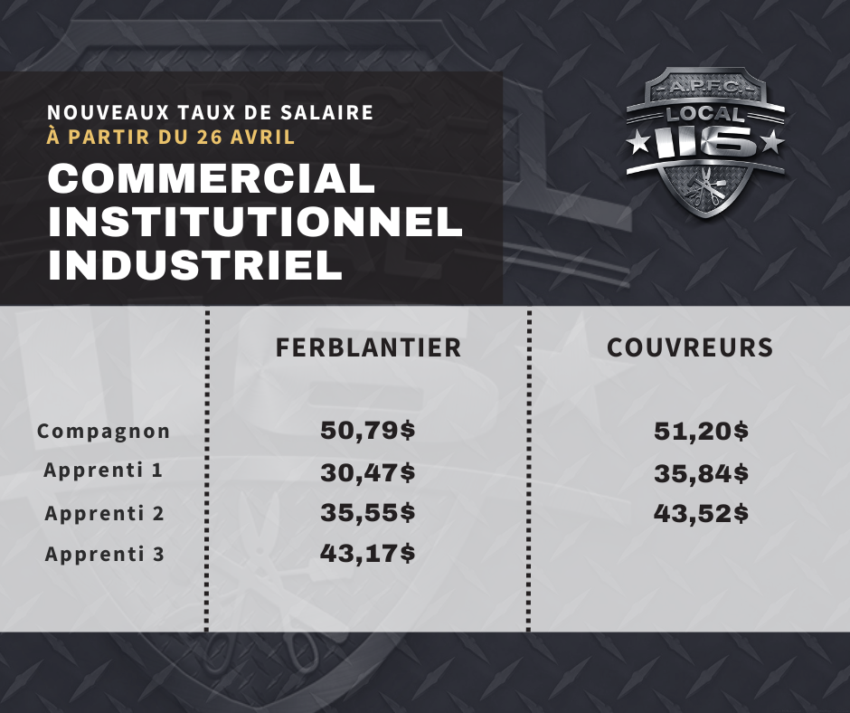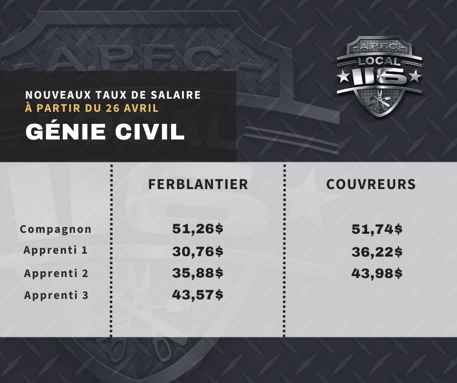Voici les nouveaux taux de salaire qui entrent en fonction le 26 avril 2026 en vertu des conventions collectives de 2025-2029.